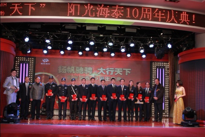 2012年1月8日,阳光海泰十周年庆典活动在观音桥清华大饭店隆重举行,重庆海泰物业管理公司、重庆海泰汽车租赁公司、重庆海嘉餐饮文化有限公司、重庆海泰环保工程公司等500多名来自各条战线的员工欢聚一堂,共庆海泰十周年生日。