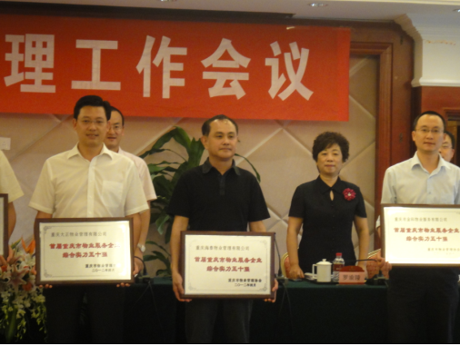 大会表彰通报了重庆市荣获2011年全国物业管理示范项目、首届重庆市物业服务企业综合实力五十强名单和首届物业管理服务技能大比拼获奖情况。首届重庆市物业服务企业综合实力五十强”评选从去年6月开始,在市国土房管局的指导下,评委会严格按照《考评标准》,对入围企业服务的物业项目进行了现场管理效果的评审;认真对企业所管项目的客户服务、保安、保洁、工程维修等考评项目的服务情况进行了现场打分;随机向业主发放了满意度调查问卷,较为全面的对参评企业现场管理效果初评出“首届重庆市物业服务企业综合实力五十强”企业,并先后两次在媒体上对入围企业的入围情况及初评结果进行了公示,对投诉情况进行了调查核实,最终评选出重庆物业管理50强。